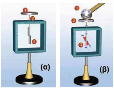 Το ηλεκτροσκόπιο στρέψης που χρησιμοποίησε ο Coulomb για να κάνει τις παρατηρήσεις του (Image: Wikimedia commons)