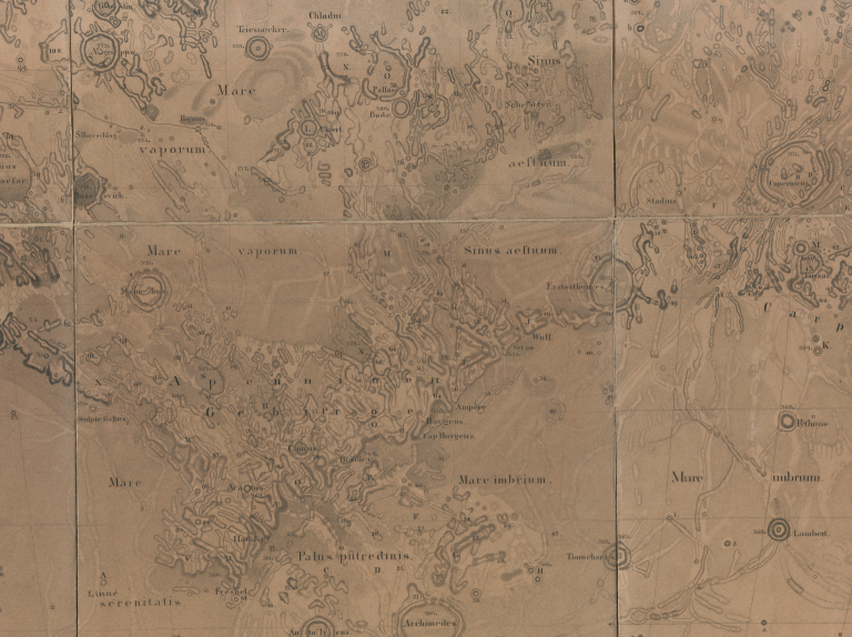 Ο χάρτης που εκδόθηκε το 1878 περιείχε απίστευτες λεπτομέρειες για την εποχή του. Χωρίζονταν σε 25 τμήματα και ο δίσκος της Σελήνης στον χάρτη είχε διάμετρο 1,9 μέτρα.