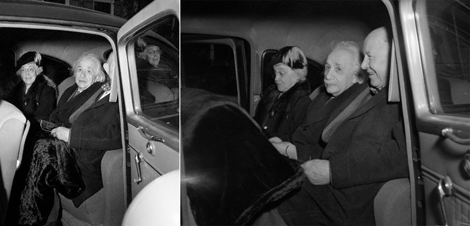 Μια ομάδα φωτογράφων προσπάθησαν να πείσουν τον Αϊνστάιν να ποζάρει για μια φωτογραφία, καθώς έφευγε από το πάρτι, και αυτός τους «αποζημίωσε» με μια αστεία πόζα. Την φωτογραφία τράβηξε ο φωτογράφος ‘Αρθουρ Σας του πρακτορείου ειδήσεων UPI. Ο ίδιος ο Αϊνστάιν αγαπούσε πολύ την αστεία φωτογραφία του και είχε ζητήσει από το UPI να του δώσει εννέα αντίγραφά της για να τα χαρίσει ως κάρτες σε φίλους του.
