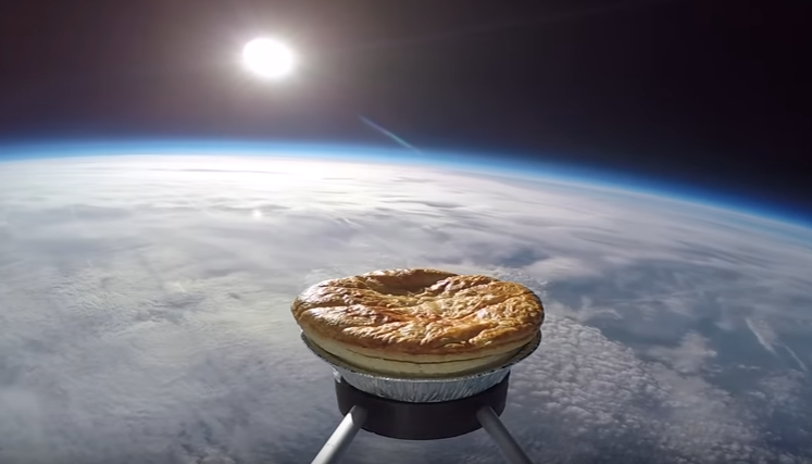 Μια κρεατόπιτα τοποθετήθηκε σε ένα μετεωρολογικό μπαλόνι κι έφτασε στο διάστημα. Είναι η πρώτη φορά που ένα τέτοιο αντικείμενο φτάνει στην στρατόσφαιρα. Υποτίθεται πως ο σκοπός του εγχειρήματος αυτού είναι για να δούμε πως επηρεάζεται η δομής της πίτας κατά τη διάρκεια μιας τέτοιας πτήσης: