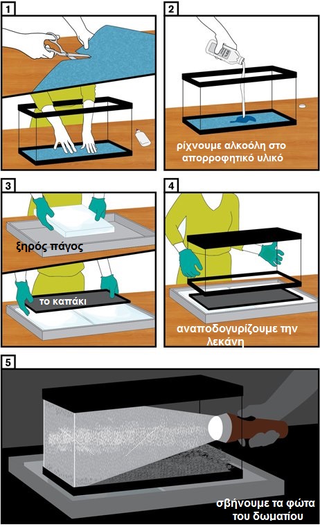 μια διαφανή γυάλινη ή πλαστική λεκάνη (σαν αυτές που χρησιμοποιούμε στα μικρά ενυδρεία) με ένα πλαστικό ή μεταλλικό καπάκι,