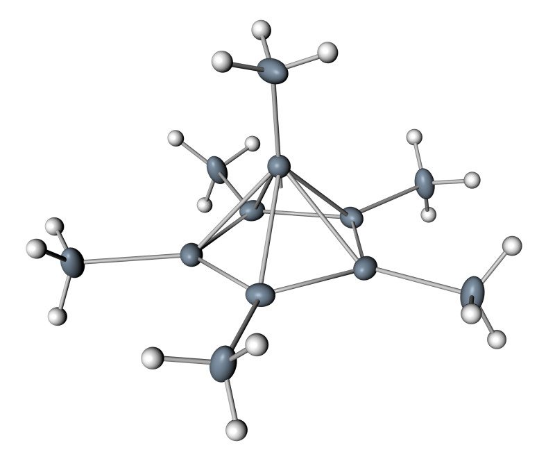Τα έξι άτομα άνθρακα καταλαμβάνουν τις κορυφές μιας κανονικής πενταγωνικής πυραμίδας.