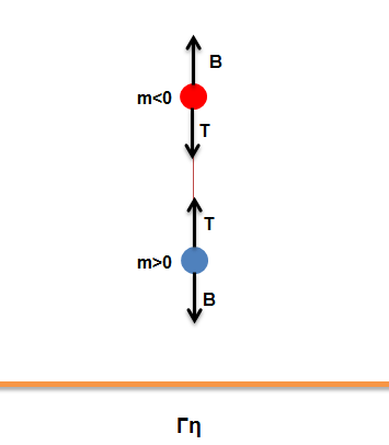 Αυτό γίνεται ακόμα πιο παράξενο να αντικαταστήσουμε την δύναμη του παιδιού στο νήμα με μια θετική μάζα. Αν π.χ. έχουμε αρνητική μάζα -1 kg στο πάνω άκρο του (αβαρούς) νήματος και δέσουμε μάζα +1kg στο κάτω άκρο του νήματος τότε το σύστημα θα αιωρείται, αφού η συνολική μάζα είναι μηδέν.