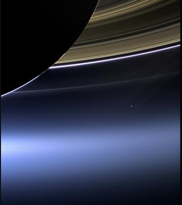 Η τελευταία φωτογραφία της Γης, που τράβηξε το Cassini στις 12 Απριλίου 2017 από απόσταση περίπου 1,4 δισεκατομμυρίων χιλιομέτρων και δείχνει τον μικροσκοπικό πλανήτη μας σαν μια κουκίδα φωτός ανάμεσα στους γιγάντιους δακτυλίους του Κρόνου