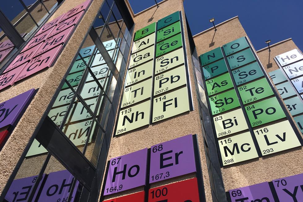Το Πανεπιστήμιο στην πόλη Μούρθια της Ισπανίας διακόσμησε τους εξωτερικούς τοίχους του κτιρίου στο οποίο στεγάζεται το τμήμα Χημείας με έναν τεράστιο περιοδικό πίνακα.