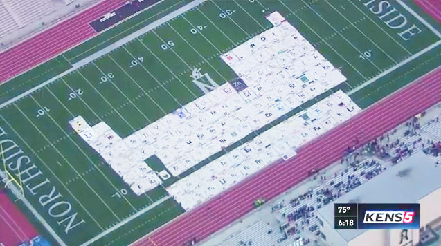 Ενώ πέρυσι πάνω από 100 σχολεία στο Σαν Αντόνιο του Τέξας συνεργάστηκαν για να κατασκευάσουν τον μεγαλύτερο περιοδικό πίνακα του κόσμου, με εμβαδόν πάνω από 2000 m2: