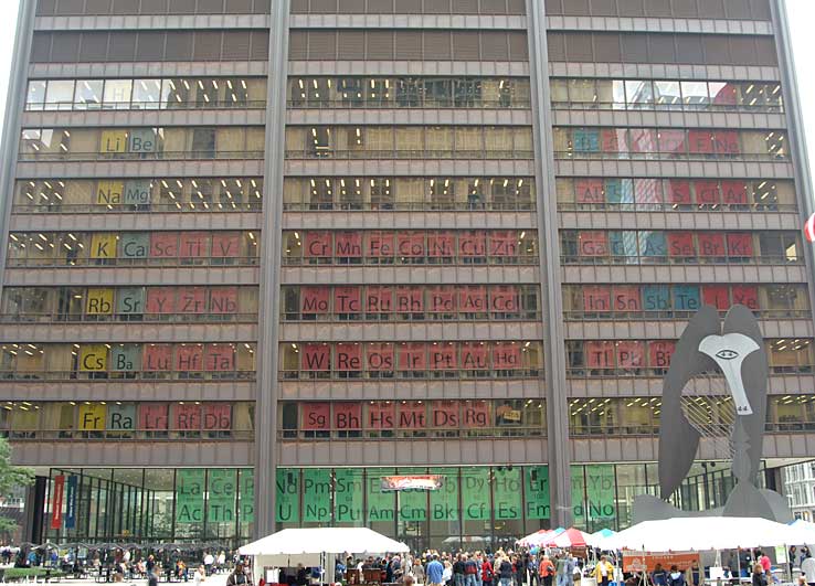 Ο πίνακας των χημικών στοιχείων καλύπτει συνολικά μια επιφάνεια 150 m2. Οι σχεδιαστές του θεωρούν πως είναι το μεγαλύτερο περιοδικό σύστημα-τοιχογραφία στον κόσμο.