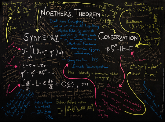 (*) Στους φυσικούς η Noether είναι γνωστή από το θεώρημα που φέρει το όνομά της, σύμφωνα με το οποίο, υπάρχει μια βαθιά σχέση ανάμεσα στις συμμετρίες και τις διατηρούμενες ποσότητες. Κάθε συμμετρία της φύσης συνεπάγεται και έναν νόμο διατήρησης και αντιστρόφως, πίσω από κάθε νόμο διατήρησης κρύβεται και μια συμμετρία.
