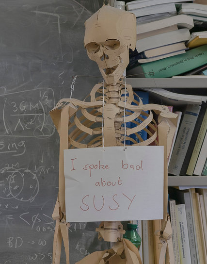 Ένας άλλος ένθερμος υποστηρικτής της υπερσυμμετρίας είναι ο John Ellis, ένας βετεράνος θεωρητικός του CERN και καθηγητής στο Kings College του Λονδίνου. Στο γραφείο του έχει έναν σκελετό από χαρτόνι που παριστάνει τον τελευταίο που άσκησε κριτική στην υπερσυμμετρία (συντομογραφικά Susy). «Προφανώς απογοητεύθηκα που η υπερσυμμετρία δεν εμφανίστηκε στα πειράματα του LHC» δήλωσε, προσθέτοντας ότι υπάρχουν ακόμα πιθανότητες να δώσει σημεία ζωής».