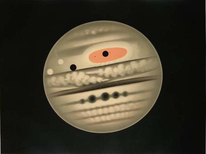 Το πιο έντονο χαρακτηριστικό στην απεικόνιση του πλανήτη Δία από τον Γάλλο αστρονόμο και καλλιτέχνη Étienne Léopold Trouvelot το 1880, είναι η μεγάλη ερυθρά κηλίδα.