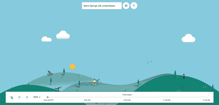 Το Πανεπιστήμιο Μπέρκλεϋ στην Καλιφόρνια, σε συνεργασία με την Google, δημιούργησε ένα πρόγραμμα που μας δείχνει πως θα φαίνεται η έκλειψη του Αυγούστου από οποιαδήποτε τοποθεσία των Ηνωμένων Πολιτειών.