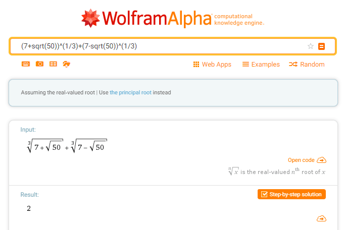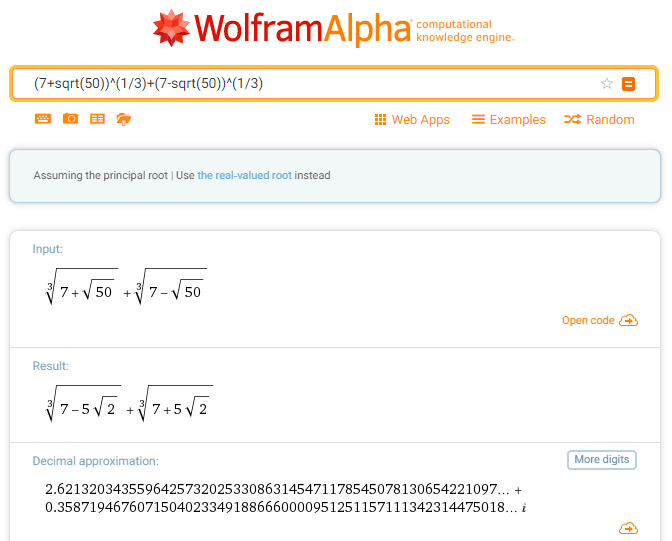 Συγκρίνοντας το αποτέλεσμα με εκείνο που δίνει η υπολογιστική μηχανή WolframAlpha προκύπτει αβίαστα το συμπέρασμα ότι δεν πρέπει να εμπιστευόμαστε τυφλά τις υπολογιστικές μηχανές. Γιαυτό ο τίτλος του βίντεο είναι «believe in the math, not wolframalpha»: