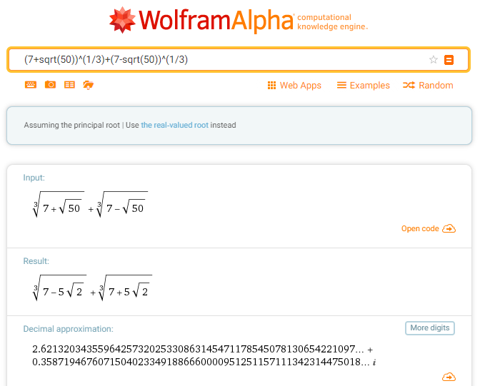 Για παράδειγμα, όταν ζητάμε την πραγματική τιμή της παράστασης , μπορεί να πάρουμε το «περίεργο» αποτέλεσμα: