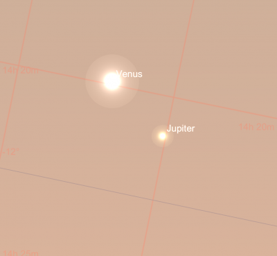 Ο Δίας και η Αφροδίτη θα βρεθούν σε γωνιώδη απόσταση μόλις ενός τέταρτου της μοίρας. Θα είναι εύκολα ορατοί στο ίδιο πεδίο ακόμα και με τηλεσκόπιο.