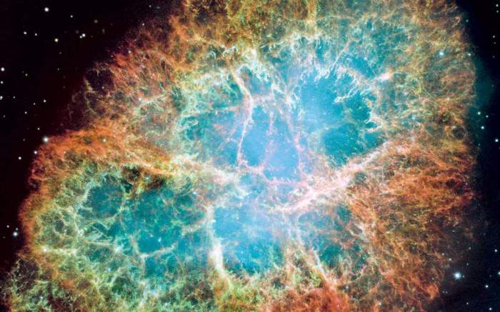 Μια τέτοια αστρική έκρηξη παρατηρήθηκε από Κινέζους αστρονόμους το έτος 1054 μ.Χ. στον αστερισμό του Ταύρου και σε απόσταση 6.300 ετών φωτός. Η έκρηξη εκείνη συνέβη όταν οι Σουμέριοι εγκαταστάθηκαν για πρώτη φορά στη Μεσοποταμία και στη μεγαλύτερή της ένταση έλαμπε με τη φωτεινότητα 500 εκατομμυρίων ήλιων. Στο σημείο εκείνης της έκρηξης τα σύγχρονα τηλεσκόπια μάς έχουν αποκαλύψει ένα φωτεινό νεφέλωμα που μοιάζει με κάβουρα, και γι’ αυτό ονομάστηκε Νεφέλωμα Καρκίνος. Το νεφέλωμα αυτό είναι τα υπολείμματα του κατεστραμμένου εκείνου άστρου, το οποίο παρ’ όλα αυτά λάμπει ακόμη και σήμερα με τη φωτεινότητα 30.000 ήλιων. Από τη μιαν άκρη ώς την άλλη έχει διάμετρο 6,5 ετών φωτός ή 62 τρισεκατομμυρίων χιλιομέτρων και συνεχίζει να διαστέλλεται ακόμη και σήμερα με ταχύτητα που φτάνει τα 5,4 εκατομμύρια χιλιόμετρα την ώρα. Αν η διαστολή του συνεχιστεί με τον ίδιο ρυθμό, τα αέρια αυτά λείψανα θα φτάσουν στη Γη σε περίπου 1,25 εκατομμύρια χρόνια.