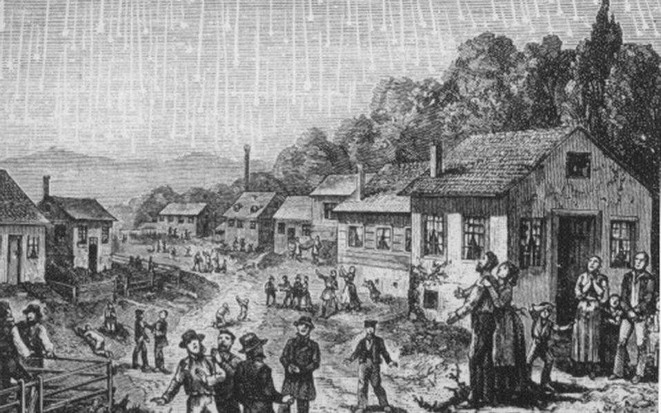 Η μεγαλύτερη παρόμοια «καταιγίδα» που παρατηρήθηκε ποτέ ήταν αυτή των Λεοντιδών στις 13 Νοεμβρίου του 1833, όταν τα μετέωρα έμοιαζαν με πυροτεχνήματα από μια ροή δεκάδων μετεώρων κάθε δευτερόλεπτο, που διήρκεσε επί ώρες. Ενας ιστορικός μάλιστα το 1878 τη θεώρησε ένα από τα εκατό πιο σημαντικά γεγονότα του αιώνα. Πολλές ξυλογραφίες έχουν απεικονίσει το γεγονός με μεγάλη επιτυχία. Αρκετοί κοινωνιολόγοι, μάλιστα, αποδίδουν στο ουράνιο αυτό φαινόμενο την εξάπλωση της θρησκομανίας που επηρέασε τα επόμενα χρόνια την όλη κοινωνική εξέλιξη και τον σύγχρονο χαρακτήρα των ΗΠΑ.