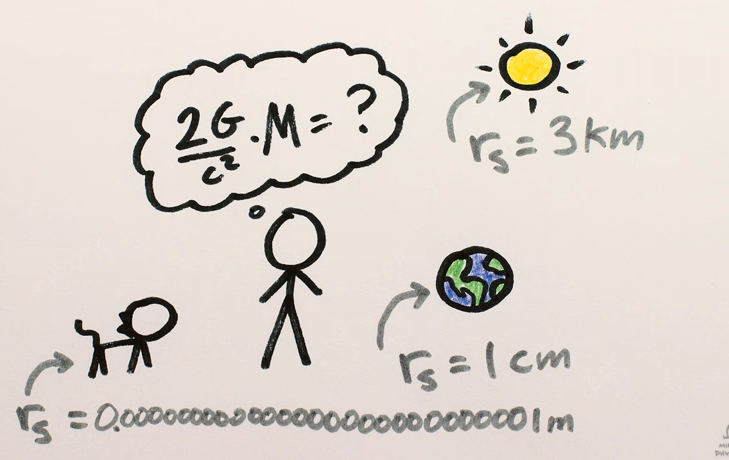 H ακτίνα Schwarzschild του ήλιου είναι 3 km και της γης περίπου 1 cm, ενώ η ακτίνα Schwarzschild ενός καλοθρεμμένου γάτου είναι περίπου 10-27m