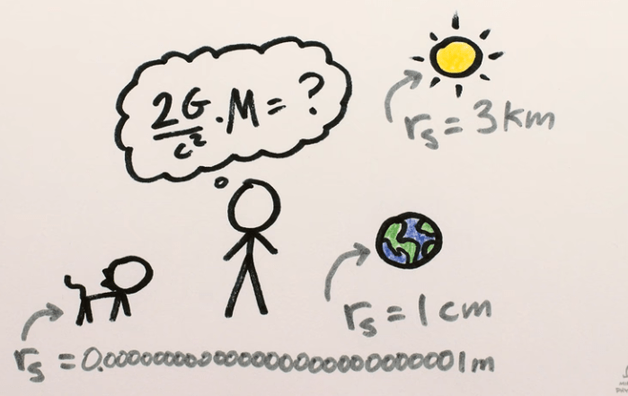 Η ακτίνα Schwarzschild δίνεται από την εξίσωση: rS= 2GM/c2, όπου G είναι η σταθερά της παγκόσμιας έλξης, Μ η μάζα του αντικειμένου και c η ταχύτητα του φωτός: