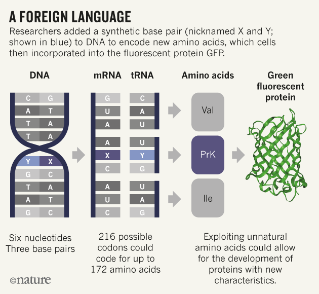 Εδώ και περίπου 3,5 δισεκατομμύρια χρόνια που εμφανίσθηκε η ζωή στη Γη, τα γονίδια στο DNA είναι «εγχειρίδια οδηγιών» για τη δημιουργία πρωτεϊνών. Τα τέσσερα γράμματα του γενετικού κώδικα είναι μόρια, γνωστά και ως αζωτούχες βάσεις. Όλοι οι ζωντανοί οργανισμοί χρησιμοποιούν αυτά τα γράμματα-βάσεις A (αδενίνη), C (κυτοσίνη), G (γουανίνη) και T (θυμίνη), αλλά ο νέος οργανισμός διαθέτει δύο ακόμη, που αποκαλούνται Χ και Υ.