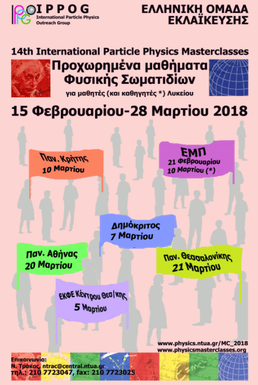 Και το 2018, η Διεθνής Ομάδα Εκλαΐκευσης Φυσικής Σωματιδίων (Internatioanal Particle Physics Outreach Group, IPPOG) διοργανώνει τα MASTERCLASSES 2017 από 15.2 έως 28.3, όπου κάθε ημέρα θα συμμετέχουν έως και πέντε Πανεπιστήμια/Ερευνητικά Ιδρύματα.