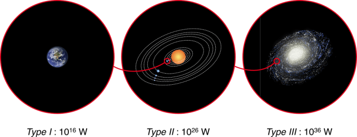 Η κατανάλωση ενέργειας από τους τρεις τύπους πολιτισμών σύμφωνα με την κλίμακα Kardashev