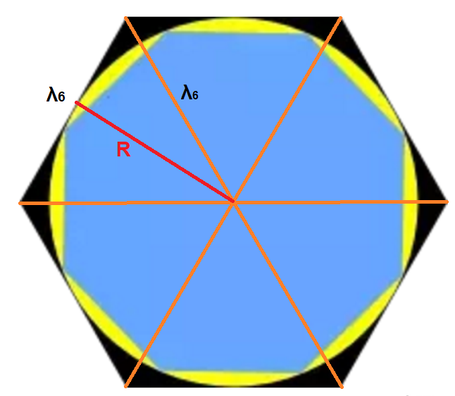 (α) το εμβαδόν ενός κανονικού εξαγώνου στο οποίο είναι εγγεγραμμένος ένας κύκλος ακτίνας R=1 σύμφωνα με το παρακάτω σχήμα