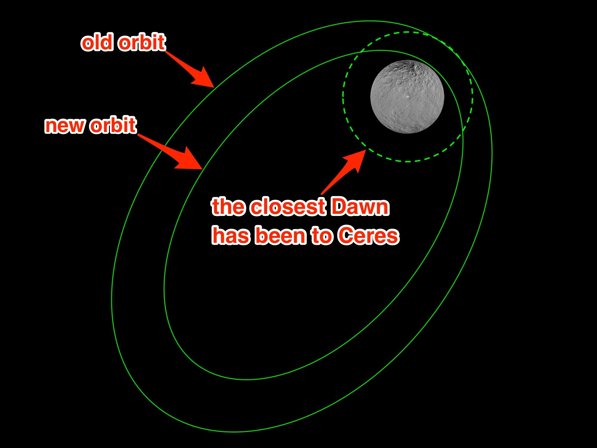 Στις αρχές Ιουνίου το σκάφος θα κατευθυνθεί στην τελική κοντινή τροχιά του πάνω από το νάνο πλανήτη και αμέσως θα αρχίσει να τραβά φωτογραφίες και να συλλέγει επιστημονικά δεδομένα, έτσι ώστε οι επιστήμονες να μάθουν περισσότερα για τη χημική σύσταση του ανώτερου στρώματος της επιφάνειας της Δήμητρας.