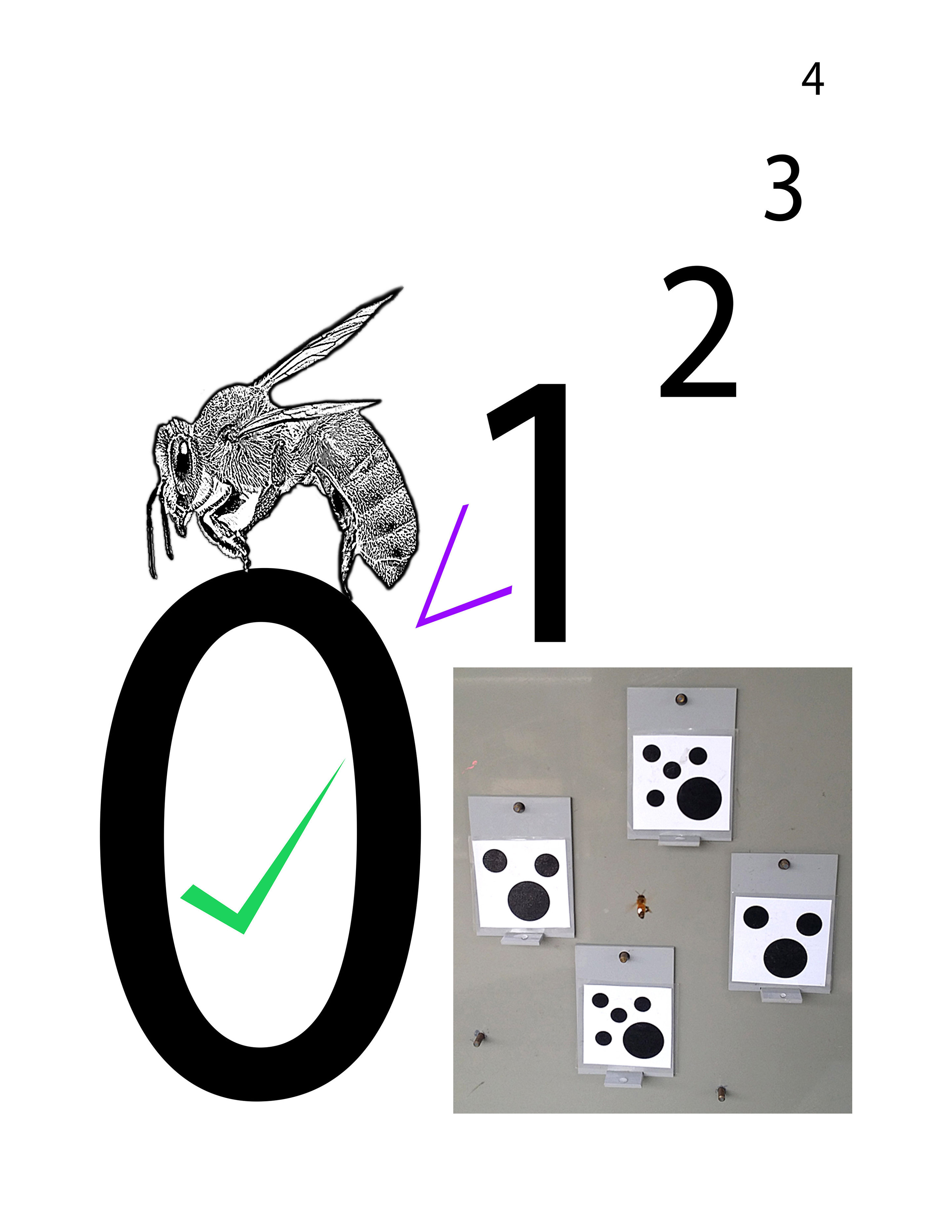 Στα πειράματα (με κίνητρο και ανταμοιβή την παροχή έξτρα τροφής για όποια μέλισσα έκανε σωστή επιλογή) η έννοια «μικρότερο από» αντιπροσωπευόταν από μια εικόνα με λίγα μαύρα γεωμετρικά σχήματα πάνω σε λευκό φόντο, ενώ την έννοια «μεγαλύτερο από» αντιπροσώπευε μια λευκή εικόνα με πολλά μαύρα σχήματα. Το μηδέν ήταν μια εικόνα που δεν είχε καθόλου μαύρα σχήματα, ήταν δηλαδή κενή. Σύμφωνα με τους ερευνητές, οι μέλισσες καταλάβαιναν ότι η εικόνα με τίποτε πάνω της (το μηδέν) ήταν μικρότερη σε αξία από την εικόνα με ένα μαύρο στίγμα πάνω της (ο αριθμός ένα).