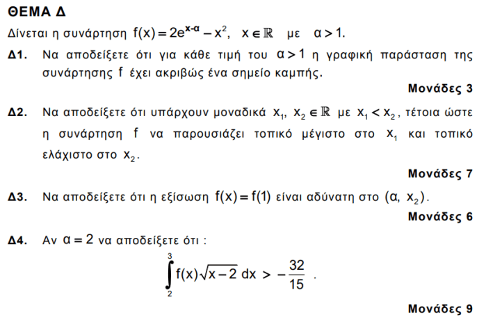 Η δεύτερη ανίσωση, , μας βοηθά να λύσουμε πολύ εύκολα και το δυσκολότερο ερώτημα (Δ4) των μαθηματικών που δόθηκε σήμερα στους υποψηφίους των πανελλαδικών εξετάσεων: