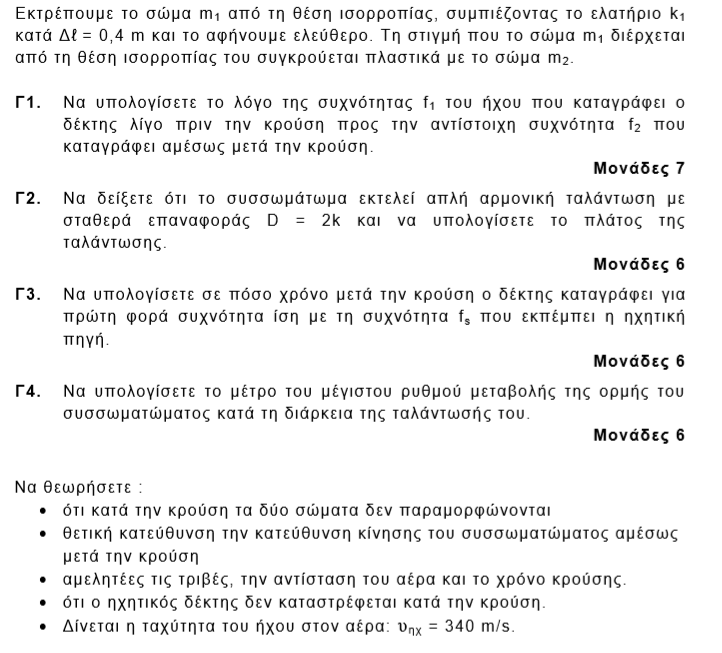 Γ1. Γ2. Α=0,2m Γ3.Δt=π/10 s Γ4. |ΔP/Δt|max=D·A = 20 kg·m/s2