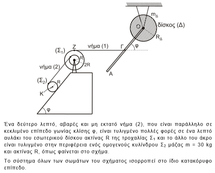 Φυσικά το παραπάνω θέμα είναι η άσκηση 4.64 του σχολικού βιβλίου αλλά με σχήμα που δεν οδηγεί σε λάθος σκέψη αλλά στην σωστή μεθοδολογία για την λύση :ΑΔΣ +ΘΕΕ