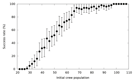 Η μελέτη τους προβλέπει πως ένα αρχικό πλήρωμα 14 ζευγαριών έχει μηδενική πιθανότητα να φτάσει στον Εγγύ του Κενταύρου. Μια τέτοια μικρή ομάδα δεν έχει αρκετή γενετική ποικιλομορφία ώστε να επιβιώσει. Αν το αρχικό πλήρωμα συνίσταται από 25 άνδρες και 25 γυναίκες, η πιθανότητα ολοκλήρωσης του ταξιδιού φτάνει στο 50%, και αν το ταξίδι ξεκινήσει με 49 ζευγάρια και πάνω τότε οι πιθανότητες επιτυχίας φτάνουν στο 100%. Οι λεπτομέρειες των υπολογισμών και των παραμέτρων που λαμβάνουν υπόψιν τους οι συγγραφείς περιέχονται εδώ: https://arxiv.org/ftp/arxiv/papers/1806/1806.03856.pdf.