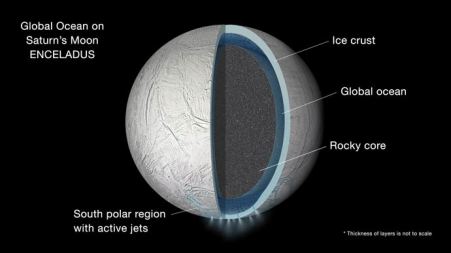 Αμερικανοί και γερμανοί επιστήμονες, οι οποίοι ανέλυσαν στοιχεία του σκάφους Cassini της NASA, ανακάλυψαν ότι μεγάλα πολύπλοκα οργανικά μόρια, πλούσια σε άνθρακα, εκτινάσσονται από ρωγμές στην παγωμένη επιφάνεια του Εγκέλαδου, του δορυφόρου του Κρόνου. Η ανακάλυψη δείχνει ότι ο Εγκέλαδος -περισσότερο από κάθε άλλο πλανήτη ή δορυφόρο πέρα από τη Γη- πληρεί τις βασικές προϋποθέσεις για την ανάπτυξη ζωής (νερό, ενέργεια, οργανικές ουσίες).