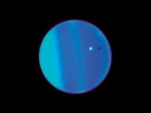 Φωτογραφία του πλανήτη Ουρανού κι ενός από τους δορυφόρους ( του Άριελ). Η φωτογραφία λήφθηκε το 2006 από το διαστημικό τηλεσκόπιο Hubble