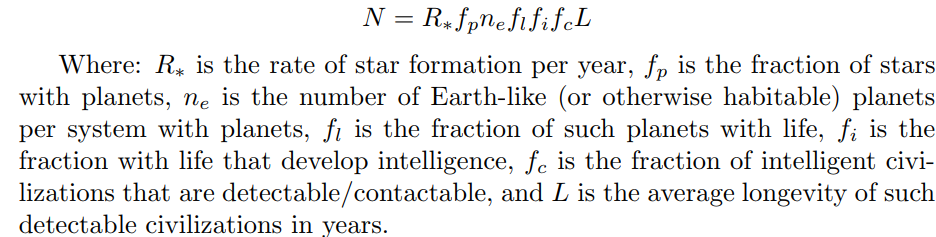Η εξίσωση Drake χρησιμοποιείται για την εκτίμηση των εξωγήινων πολιτισμών στον γαλαξία μας ή σε ολόκληρο το σύμπαν