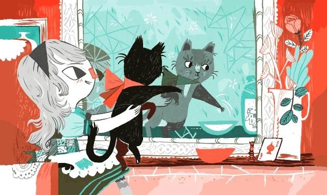 Στο βιβλίο του Lewis Carroll «Μεσ’ από τον καθρέπτη», που κυκλοφόρησε το 1899, η Αλίκη υποθέτει ότι το γάλα μέσα από τον καθρέφτη μπορεί να μην έχει τόσο καλή γεύση για τη γάτα, όσο το συνηθισμένο γάλα! [σκίτσο της Meg Hunt]