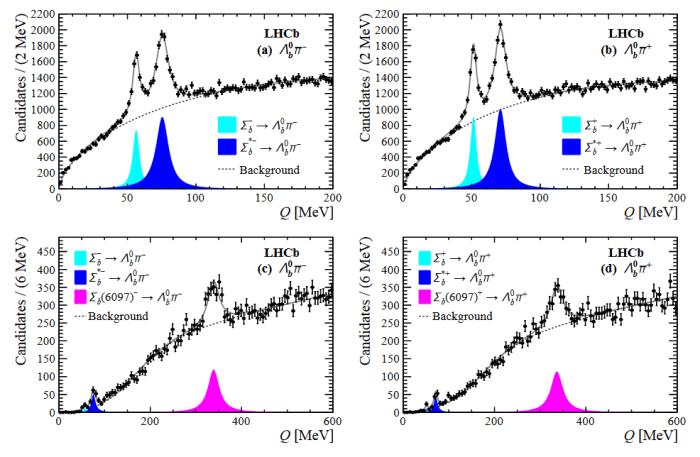 Τα νέα σωματίδια προβλέπονται από τη θεωρία των στοιχειωδών σωματιδίων και ανήκουν στην ίδια οικογένεια σωματιδίων με τα πρωτόνια, τα βαρυόνια, που αποτελούνται από τρία κουάρκ. Ενώ τα πρωτόνια περιέχουν δυο πάνω κουάρκ και ένα κάτω κουάρκ, τα νέα σωματίδια που ονομάζονται Σb(6097)+ και Σb(6097)– αποτελούνται από ένα κουάρκ πυθμένα και δυο πάνω κουάρκ (buu) ή ένα κουάρκ πυθμένα και δυο κάτω κουάρκ (bdd), αντίστοιχα. Τέσσερα παρόμοια με αυτά σωματίδια, γνωστά ως Σb+, Σb–, Σb*+ και Σb*- παρατηρήθηκαν για πρώτη φορά σε ένα πείραμα στο Fermilab, όμως τώρα είναι η πρώτη φορά που τα δυο μεγαλύτερα Σb(6097)+ και Σb(6097)– ανιχνεύονται.