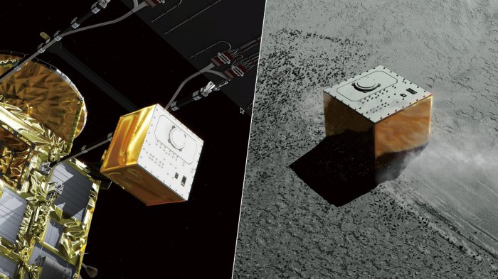 Το διαστημικό σκάφος Hayabusa-2 της Ιαπωνικής Διαστημικής Υπηρεσίας (JAXA) έστειλε με επιτυχία ακόμη ένα «ρόβερ» στον αστεροειδή Ριούγκου. Το Mascot έρχεται να προστεθεί στα δύο μικρά «ρόβερ» Minerva, που είχαν κατέβει στον αστεροειδή στις 21 Σεπτεμβρίου. Τα «ρόβερ» αυτά κινούνται πάνω στον Ριούγκου, χοροπηδώντας από το ένα σημείο στο άλλο. Το γερμανογαλλικής κατασκευής Mobile Asteroid Surface Scout (Mascot), που μοιάζει με κουτί παπουτσιών, διαθέτει τέσσερα επιστημονικά όργανα: Υπέρυθρο μικροσκόπιο, κάμερα, όργανο μέτρησης της ηλεκτρομαγνητικής ακτινοβολίας και μαγνητόμετρο. Θα κινηθεί στην επιφάνεια του αστεροειδούς και θα αναλύσει τη χημική σύνθεσή του, τη θερμοκρασία και το μαγνητικό πεδίο του.