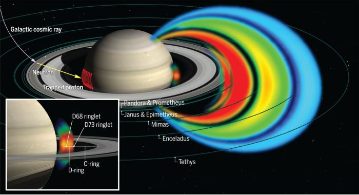 Μία ζώνη ακτινοβολίας πρωτονίων πολύ υψηλής ενέργειας μεταξύ του Κρόνου και των πυκνών δακτυλίων του, ανακάλυψαν Έλληνες επιστήμονες, αναλύοντας τα πρώτα αποτελέσματα από την τελική φάση της αποστολής του διαστημικού σκάφους Cassini.