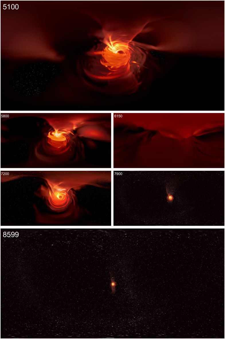 «Οι επιστήμονες στο Πανεπιστήμιο Radboud της Ολλανδίας και στο Πανεπιστήμιο Goethe της Γερμανίας, χρησιμοποίησαν τα πρόσφατα αστροφυσικά μοντέλα του Τοξότη A * για να δημιουργήσουν μια σειρά εικόνων οι οποίες στη συνέχεια τις ένωσαν, για να δημιουργήσουν μια προσομοίωση εικονικής πραγματικότητας 360 μοιρών.»