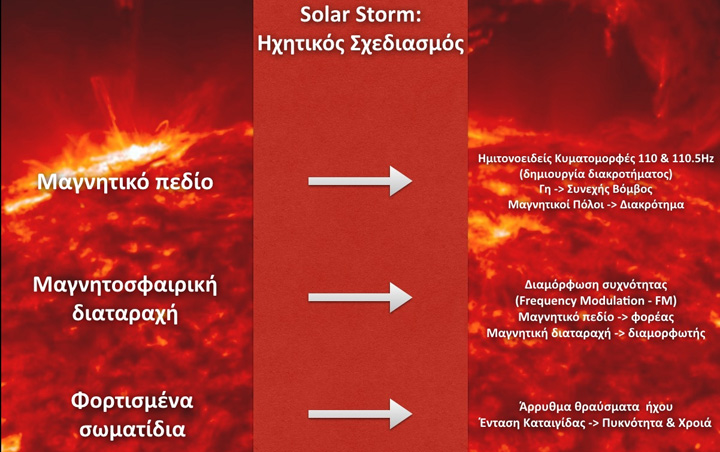 «Οι ηλιακές καταιγίδες», εξηγεί ο αν. καθηγητής, «οι εκρήξεις υπερκαινοφανών, ακόμα και τα προσφάτως επιβεβαιωμένα βαρυτικά κύματα αποτελούν μερικά παραδείγματα φαινομένων που ήδη έχουν τύχει ηχοποίησης με εντυπωσιακά αποτελέσματα. Το ίδιο και οι «ήχοι» από τους πλανήτες του ηλιακού συστήματος, όπως αυτοί δημιουργήθηκαν από κατάλληλους ακουστικούς μετασχηματισμούς του συλλεγόμενου από διαστημικά σκάφη ηλεκτρομαγνητικού αποτυπώματός τους, ή ακόμα και η έννοια του χωρόχρονου, όπως αυτή μπορεί να γίνει αντιληπτή μέσω της αναπαραγωγής ηχητικού περιεχομένου σε περισσότερες των τριών διαστάσεων. Και η μετατροπή αυτή, μπορεί να αφορά αμιγώς την επιστημονική έρευνα, προσφέροντας στους επιστήμονες νέα απεικονιστικά εργαλεία και διευκολύνοντας έτσι την μελέτη και πρόοδο στο πεδίο της αστρονομίας, της αστροφυσικής και της κοσμολογίας, συχνότερα όμως απευθύνεται στο ευρύ κοινό, με κύριο στόχο την «χωρίς-λόγια» διάδοση και εκλαΐκευση της επιστήμης. Το ηχητικό περιεχόμενο που συλλέγεται από το σύμπαν με τον τρόπο αυτό, καθίσταται ουσιαστικά ισοδύναμο με τις φωτογραφικές καταγραφές ουράνιων αντικειμένων και φαινομένων που είναι διαθέσιμες σε έντυπη και ηλεκτρονική μορφή. Παράλληλα όμως, τα τελευταία χρόνια, η ανωτέρω ηχοποίηση έχει αρχίσει να βρίσκει αποδοχή και στο δημιουργικό/καλλιτεχνικό πεδίο των σύγχρονων ψηφιακών τεχνών και της τέχνης του ήχου, κάποιες φορές ως μέσο ηλεκτρονικής ηχητικής ή μουσικής σύνθεσης και, κάποιες άλλες, ως φορέας αλληλεπίδρασης και αυτοσχεδιασμού με το καλλιτέχνη/δημιουργό».