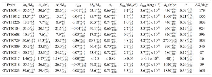 Οι άλλες τρεις νέες περιπτώσεις βαρυτικών κυμάτων (GW170809, GW170818 και GW170823) που ανακοινώθηκαν τώρα και είχαν ανιχνευθεί αρχικά πέρυσι τον Αύγουστο, προερχόμενες όλες από τη συγχώνευση ζευγαριών μαύρων τρυπών, οδήγησαν σε νέες ενιαίες μαύρες τρύπες με μεγέθη 56 έως 66 φορές μεγαλύτερα του Ήλιου.