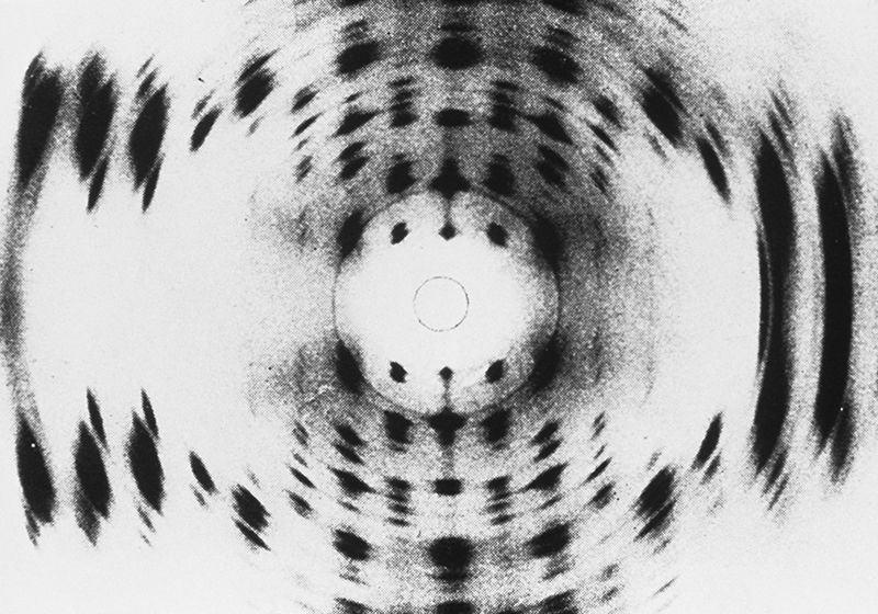 Μια εικόνα περίθλασης ακτίνων Χ ενός τμήματος μορίου DNA. Η νέα μορφή DNA των 8 «γραμμάτων» που δημιουργήθηκε στο εργαστήριο , είναι το ίδιο σταθερή
