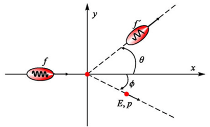 Το φωτόνιο με συχνότητα f συγκρούεται ελαστικά με ακίνητο ηλεκτρόνιο. Μετά την κρούση το φωτόνιο έχει συχνότητα f’ και η κατεύθυνση της κίνησής του σχηματίζει γωνία θ με την αρχική κατεύθυνση, ενώ η κατεύθυνση της κίνησης του ηλεκτρονίου σχηματίζει γωνία φ.