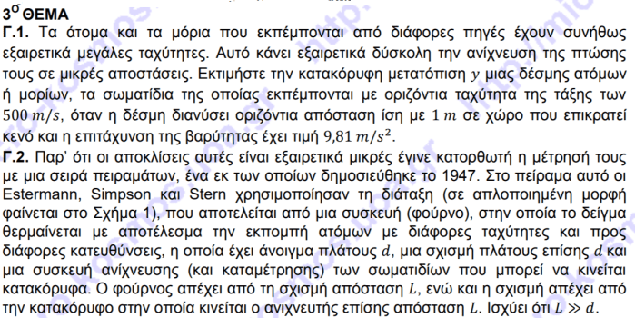 Το εν λόγω πείραμα των I. Estermann, O. C. Simpson, και O. Stern που δημοσιεύθηκε το 1947 με τίτλο «The Free Fall of Atoms and the Measurement of the Velocity Distribution in a Molecular Beam of Cesium Atoms» αποτέλεσε την έμπνευση για ένα πρόβλημα που τέθηκε στους μαθητές στον χθεσινό Πανελλήνιο Διαγωνισμό Φυσικής «Αριστοτέλης» 2019: