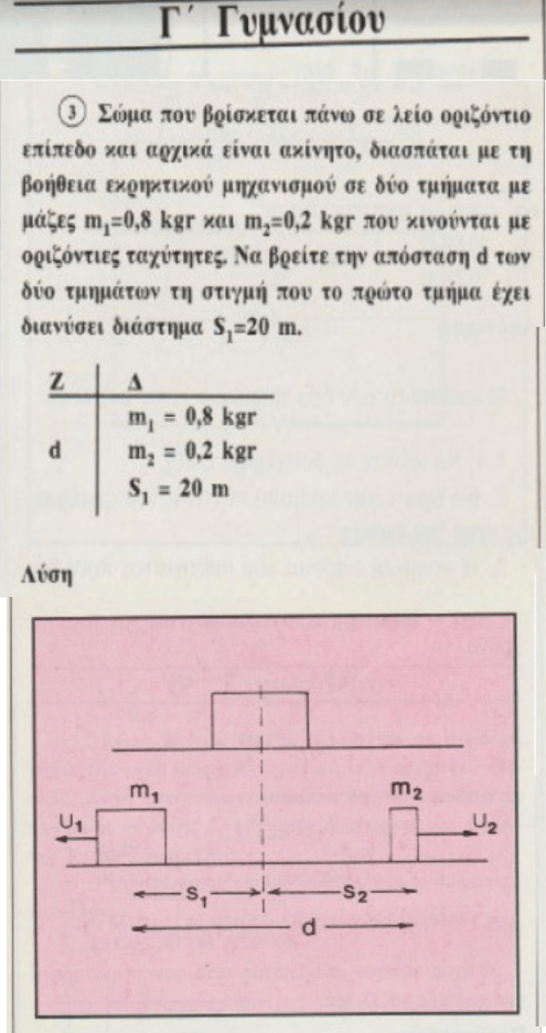 1. Η πρώτη άσκηση αναφέρεται στην έννοια της ορμής, που σήμερα διδάσκεται στην Β’ Λυκείου … αλλά μόνο στους μαθητές που παρακολουθούν την Φυσική Προσανατολισμού Θετικών Σπουδών: