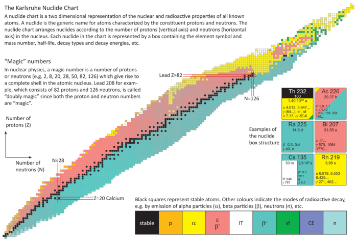Σχηματικό διάγραμμα της νέας 10ης έκδοσης του χάρτη νουκλιδίων της Καλσρούης όπου περιγράφονται τα βασικά χαρακτηριστικά του