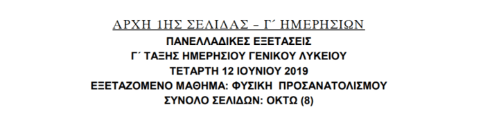 ΘΕΜΑΤΑ ΦΥΣΙΚΗΣ Γ’ ΛΥΚΕΙΟΥ 2019 (σε pdf): πατήστε ΕΔΩ