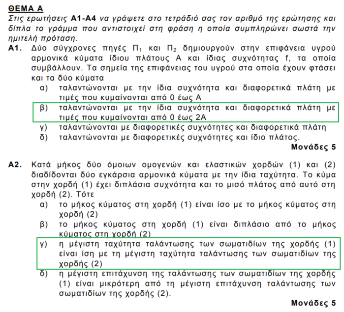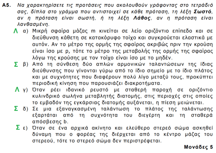 Το προεδρικό διάταγμα για τις πανελλαδικές εξετάσεις, καθορίζει ότι τα θέματα Β, ελέγχουν την κατανόηση της θεωρίας, ενώ τα θέματα Β2 και Β3 ήταν ασκήσεις (θέματα Γ). Τα θέματα Α2, Α4 απαιτούσαν πράξεις (θέματα Β). Το Α5ε είναι επιστημονικά ελλιπές γιατί δεν καθορίζει αν υπάρχει τριβή.