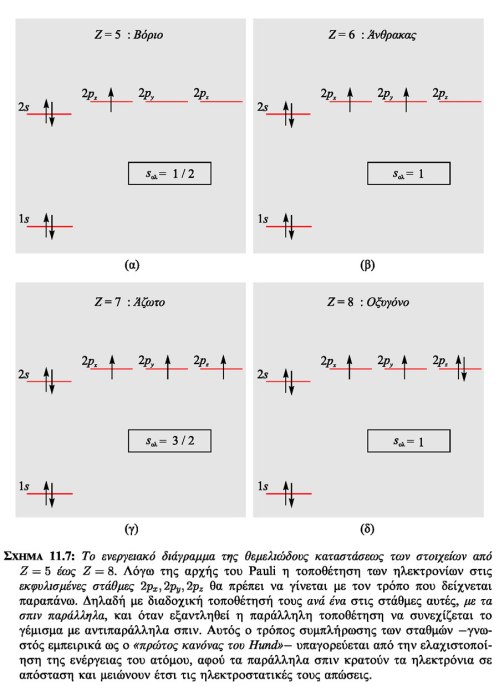 Στη λεζάντα του «σχ. 11.7» λέει «…με τα σπιν παράλληλα…».